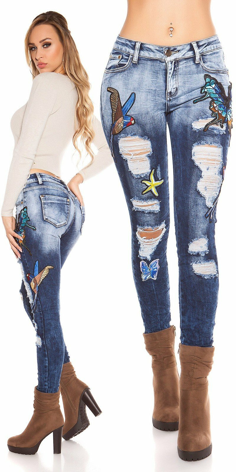 Džínsy s predĺženým pásom výborne zoštíhľujú driek a tvarujú postavu. Na trhu nájdete skinny džínsy, ktoré kopírujú tvary postavy a zvýrazňujú jednotlivé krivky. Ak by ste preferovali prekryť drobné nedostatky vašej postavy, môžete ich prekryť predĺženým topom, kardigánom alebo oversized mikinou. Stále to ste vy a vašej tvorivosti v obliekaní sa medze nekladú. Vytvárajte štýlové outfity, v ktorých zvýraznite samých seba, svoju vlastnú osobnosť. Modrá, sivá či čierna? Práve tieto farby patria k základným farbám ponuky džínsov. Ďalej sú to rôzne farebné odtiene červenej, fialovej, zelenej, hnedej a tak ďalej. Džínsy so zaujímavými vzormi, ktoré sú mimoriadne pôsobivé. Určite si vyberiete. Dajte džínsom zelenú a zásobte sa dostatočným počtom na nosenie počas tohto roka. Dlhé, krátke, potrhané, aj takéto možnosti nájdete pri výbere džínsov.